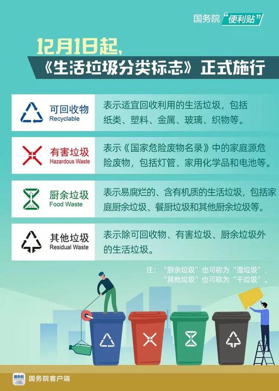 《生活垃圾分類標(biāo)志》正式施行,手把手教你垃圾分類 日期:2019-12-11 上一篇:垃圾分類七大門(mén)派 你知道幾個(gè)? 下一篇:全國(guó)住房和城鄉(xiāng)建設(shè)工作會(huì)議召開(kāi) 部署2020年九大重點(diǎn)任務(wù)! 返回
